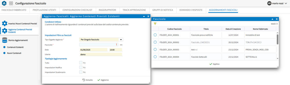 Aggiornamenti Fascicoli