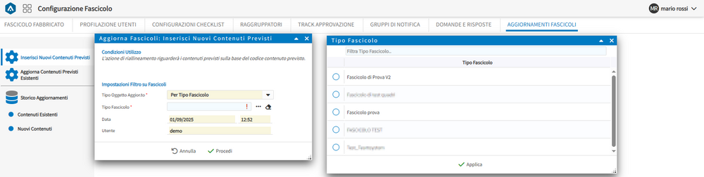 Inserisci Nuovi Contenuti Previsti Per Tipo Fascicolo
